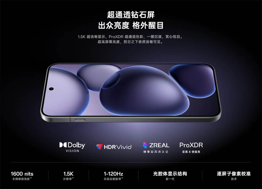 ▼ディスプレイサイズは6.32インチ、解像度は2,640×1,216で1-120Hzの可変リフレッシュレート対応です。最大輝度は1,600nitsに達するため、外でもしっかり画面が見えますね。↓