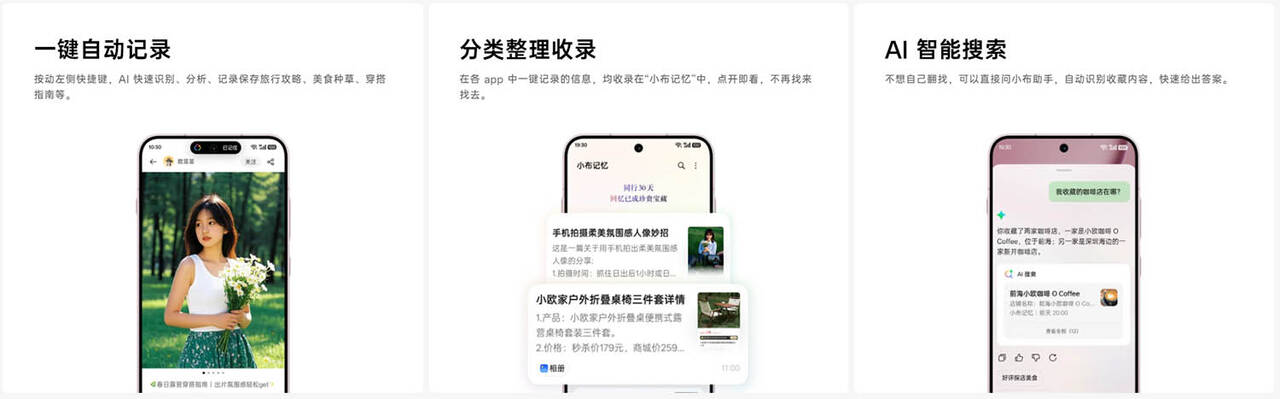 ▼ショートカットボタンにAI起動を割り当てることでAI機能を呼び出すことができます。小布记忆(Xiaobu Memory)という記録機能、小布助手(Xiaobu Assistant)という変わりに検索してくれる機能などを搭載しています。↓