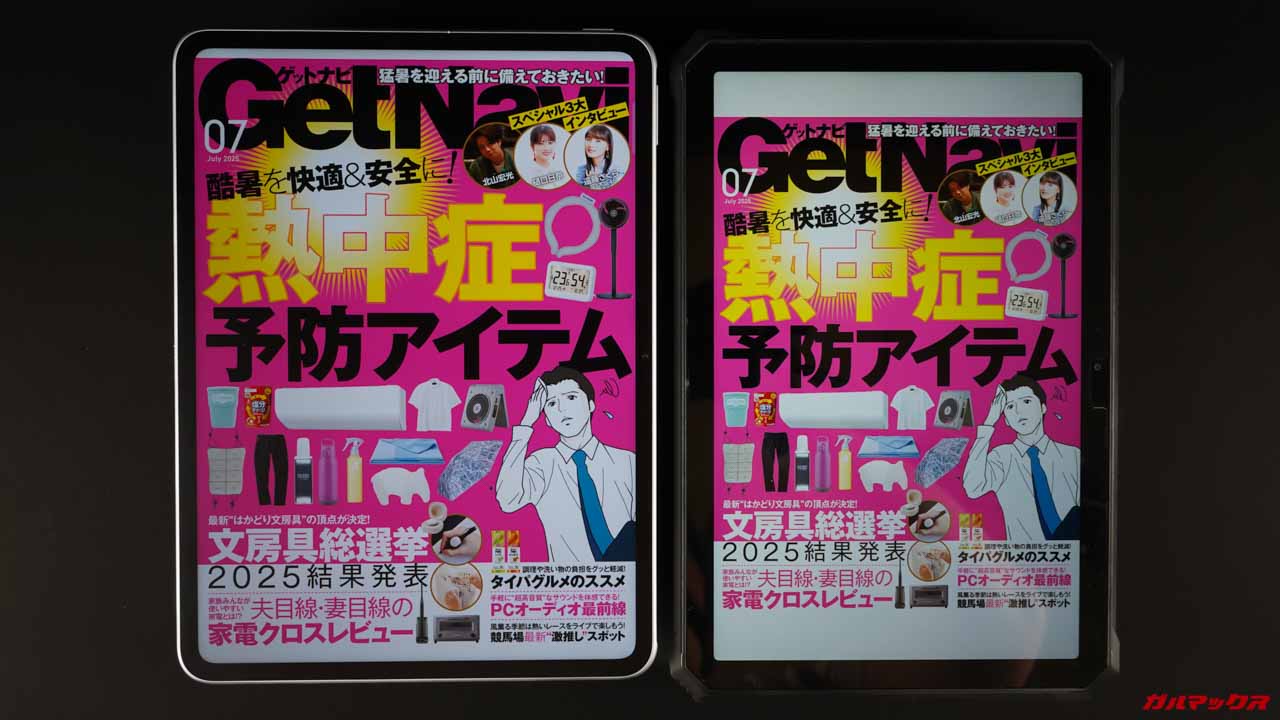 ▼16:10のタブレットと同じ雑誌を表示してみました。本機は画面いっぱい表示されているのが分かるはず。↓