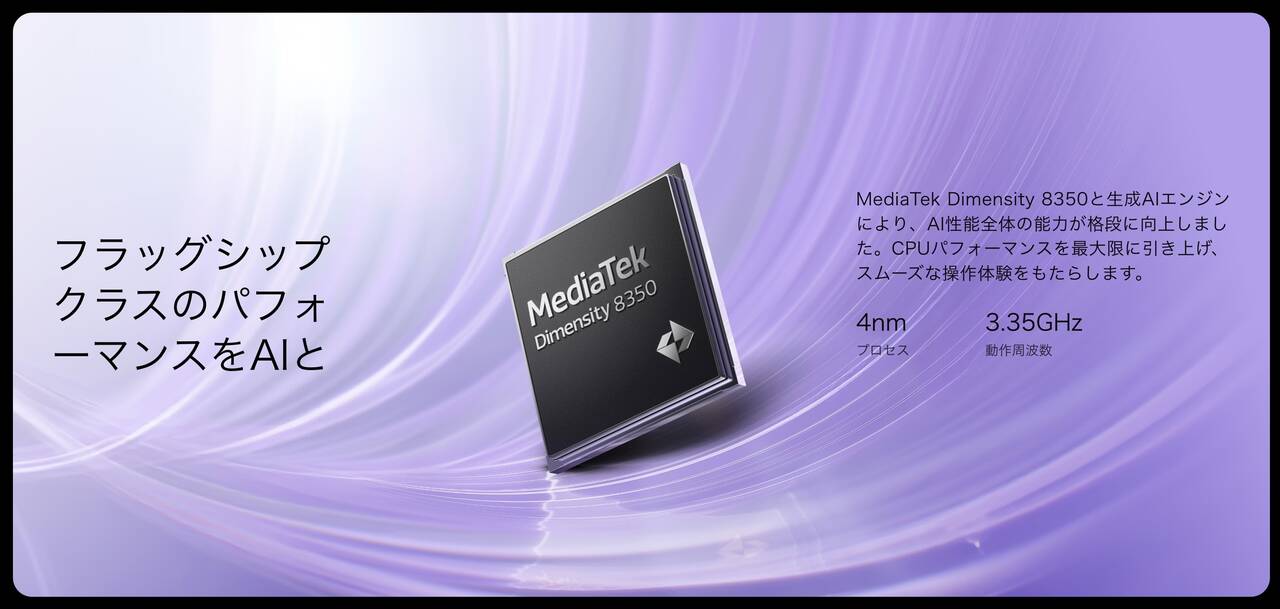 ▼OPPO Pad 3 Matte Display Editionが搭載するSoCはOPPO Reno14 5Gと同じMediaTekのDimensity 8350を搭載。↓