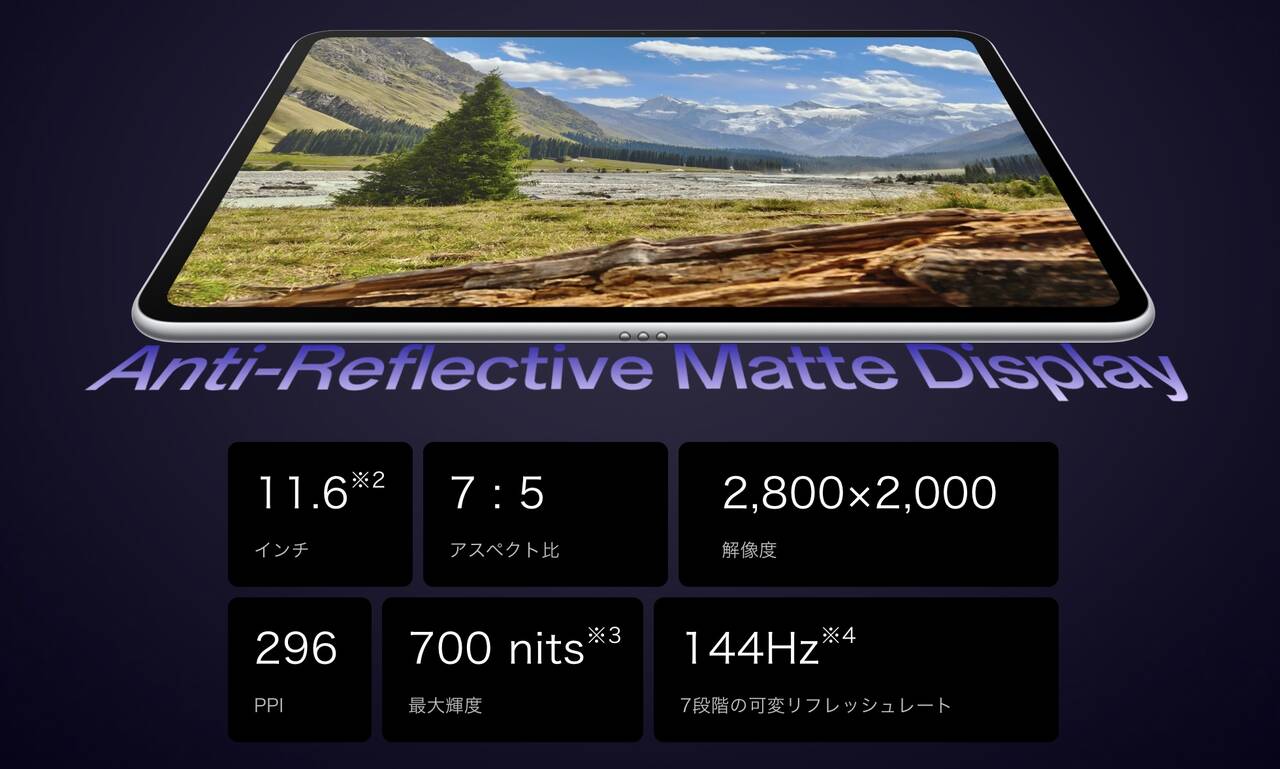 | 画面 | 11.6インチ/2,800×2,000/液晶/144Hz |