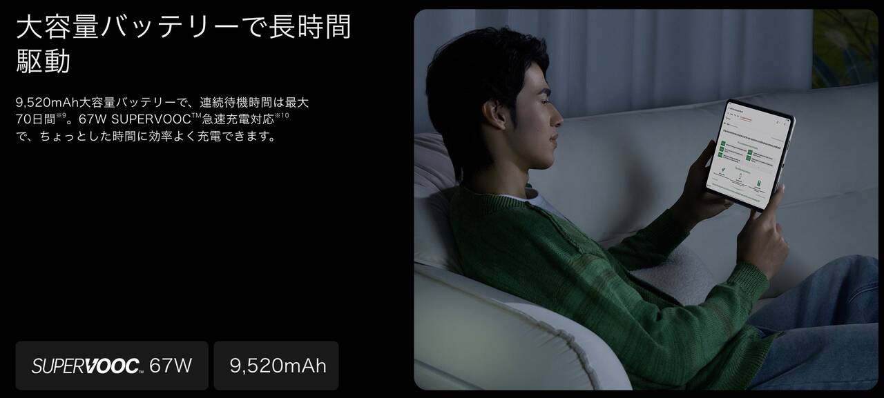 ▼OPPO Pad 3 Matte Display Editionのバッテリー関連仕様は以下の通り。↓