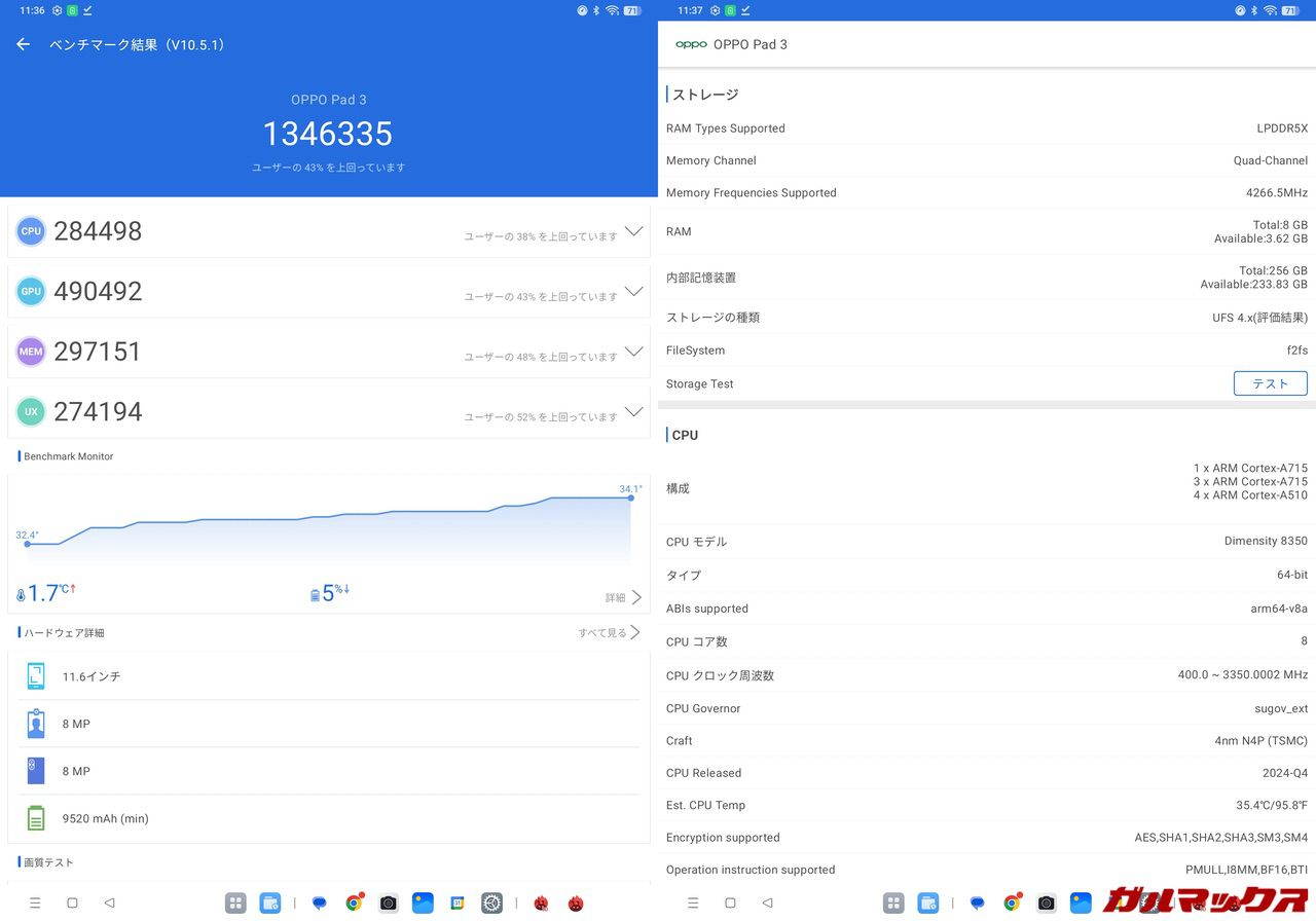 OPPO Pad 3 Matte Display Editionの性能・ベンチマークをチェック