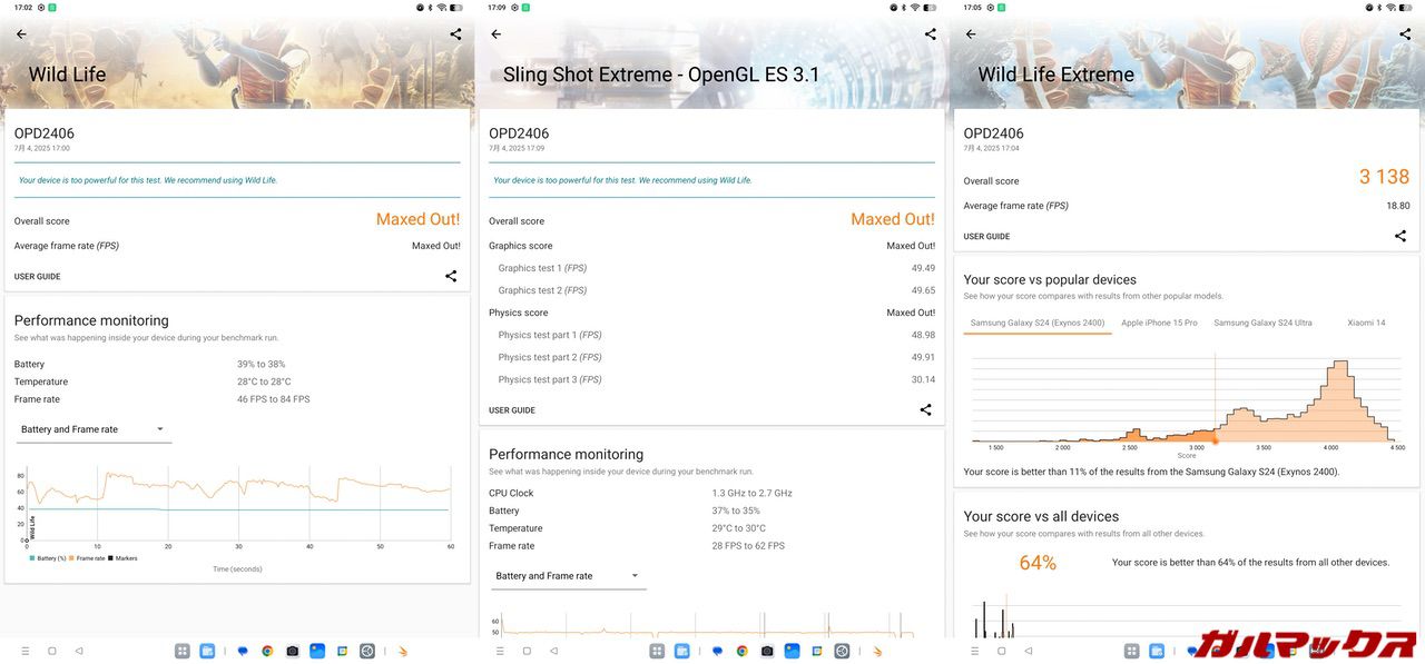 同じSoCを搭載するOPPO Reno14 5Gは下限49FPSだったので誤差の範囲ですね。
