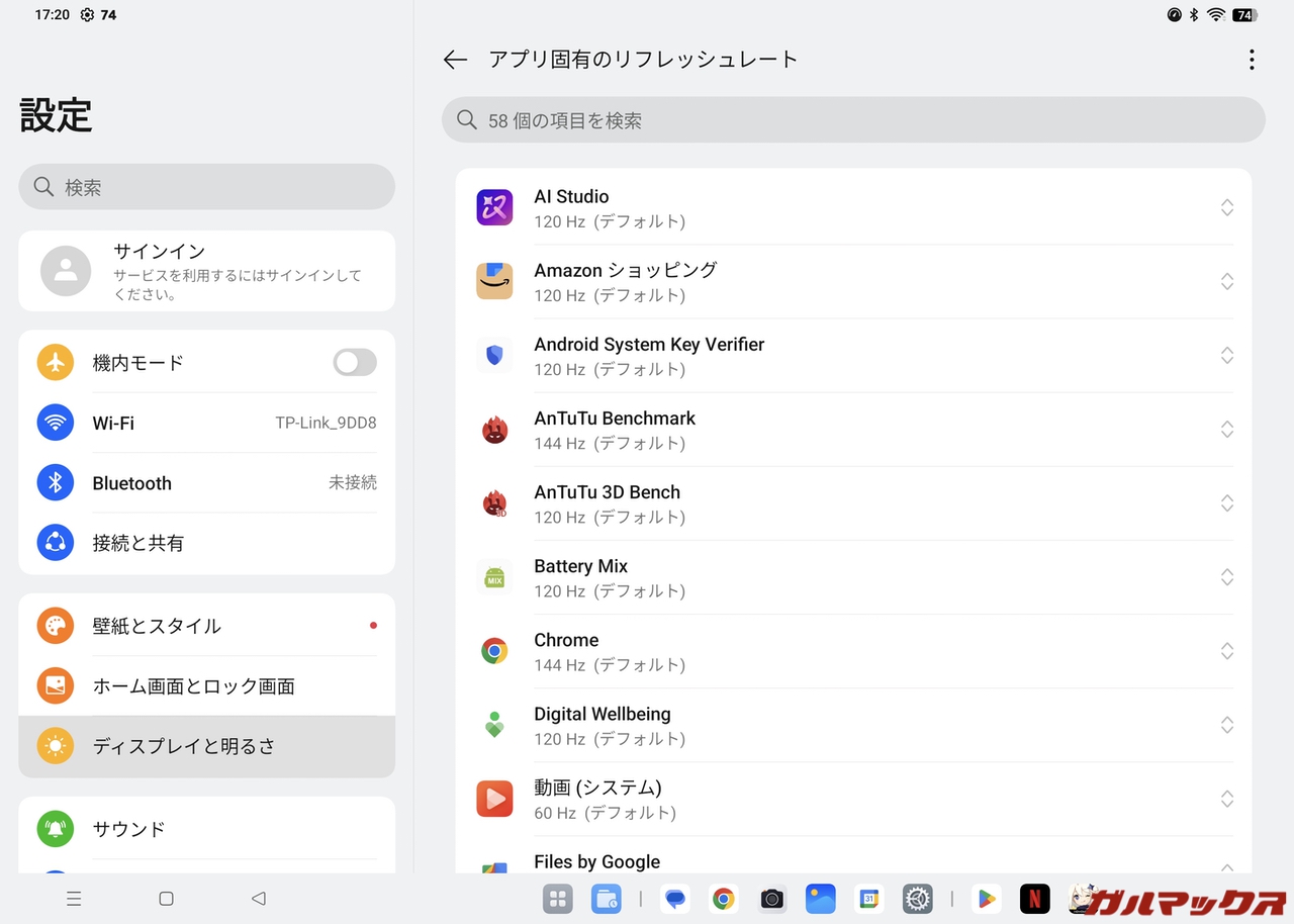 ▼アプリ事にリフレッシュレートを設定したい場合も柔軟に対応。ゲーム側のFPSと合わせたい時にマニュアルで固定できるのは良いですね。↓