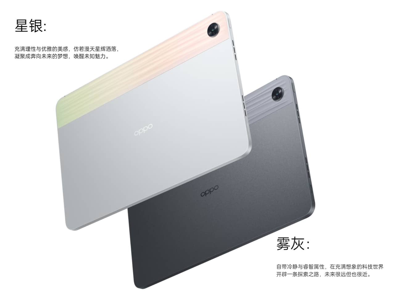 ▼OPPO Pad Airのカラーはシルバーとグレーの2色構成となっています!うちシルバーはグラデーション加工がほどこされており、兄貴分のOPPO Padゆずりの外観のハデさですね。↓