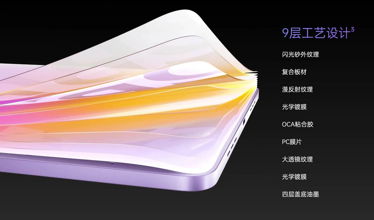 ▼背面パネルは9層ものコーティング加工が施されており美しい見た目。上質な手触りと指紋がつきにくいのがウリみたいですよ!実機を見たくてたまらんぞ!↓