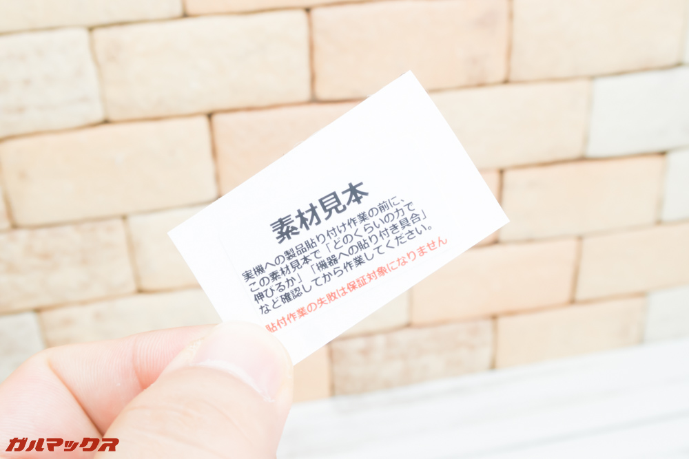 ▼ご丁寧にフィルムのサンプルが入っていました。伸び具合などを予めサンプルで体感することが出来ます。嬉しい配慮ですね!↓