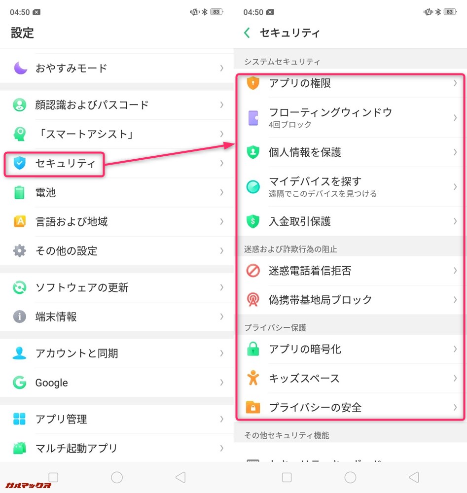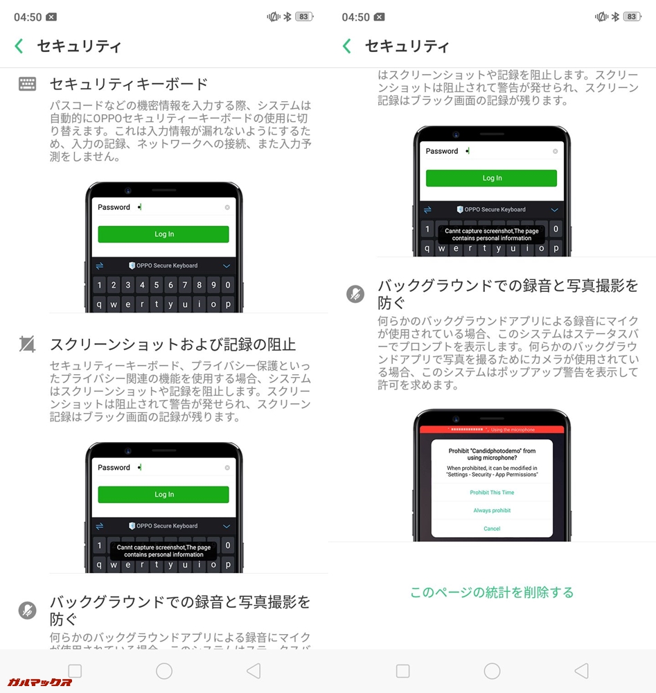 OPPO R15 Neoは、かなりセキュリティ面の機能が追加されてます。