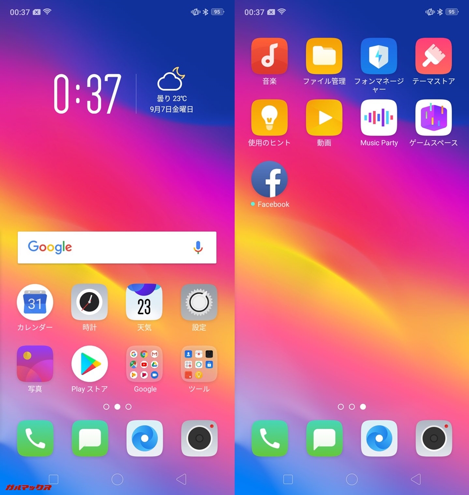 ▼OSにはAndroid 8.1をベースとしたOPPO独自のカスタマイズOSのColor OSが搭載されています。↓