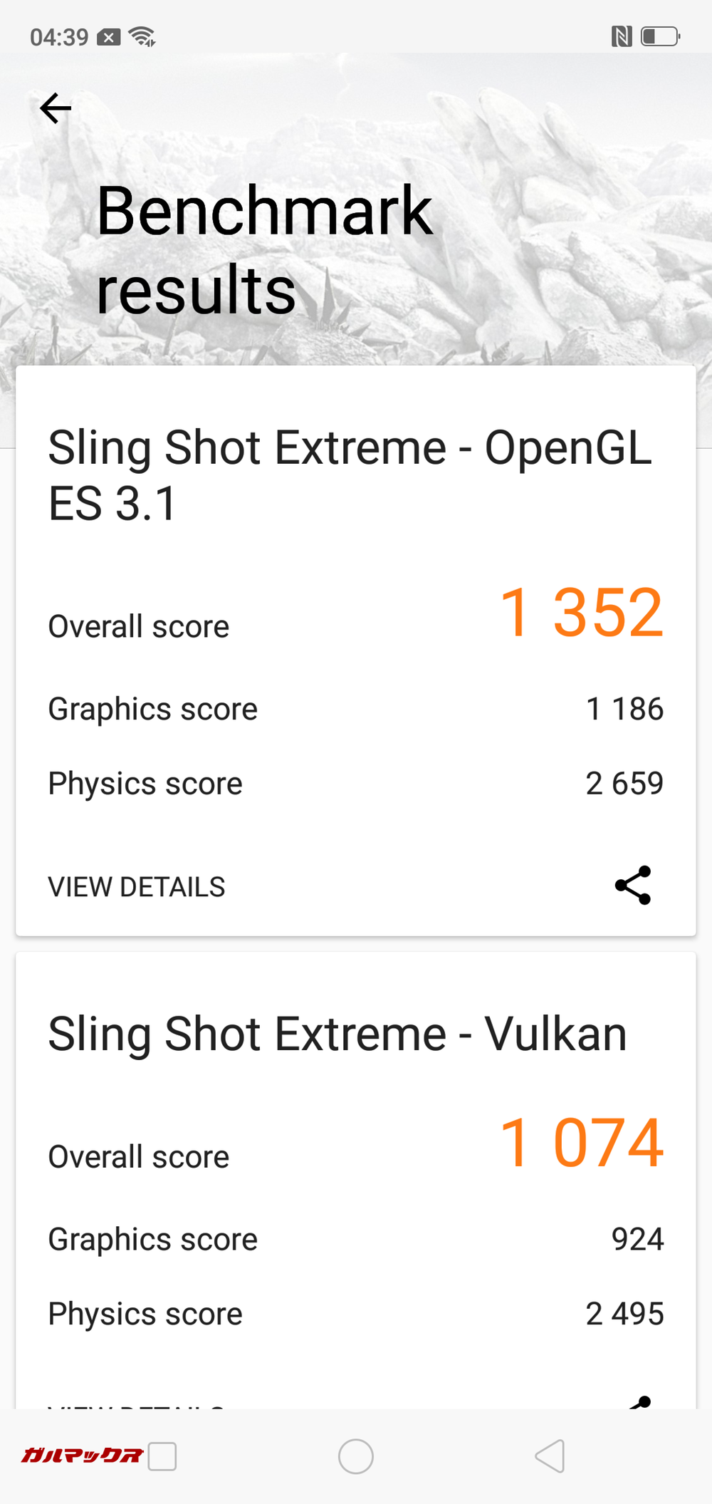 ▼3DMarkでゲーム性能をチェックしている方は以下をどうぞ!OpenGL ES 3.1が1352点、Vulkanが1074点でした!↓
