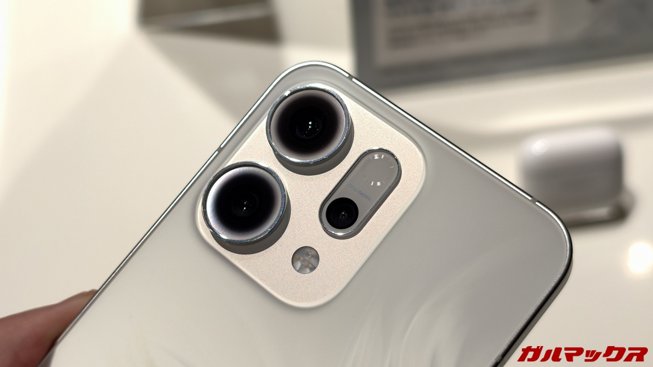 | 背面カメラ | トリプルカメラ ①5,000万画素(メイン、f/1.8、LYT-600) ②800万画素(超広角、116°、f/2.2) ③5,000万画素(望遠、光学3.5倍ズーム、f/2.8) 手ぶれ補正:光学式(メイン、望遠) センサーサイズ:非公表 PXサイズ:非公表 |