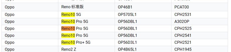 ▼というのもGoogleの対応デバイス一覧のページにて、「A302OP」と「CPH2541」の2つが掲載されています。そして‥その横には「OPPO Reno10 Pro 5G」の文字が!↓