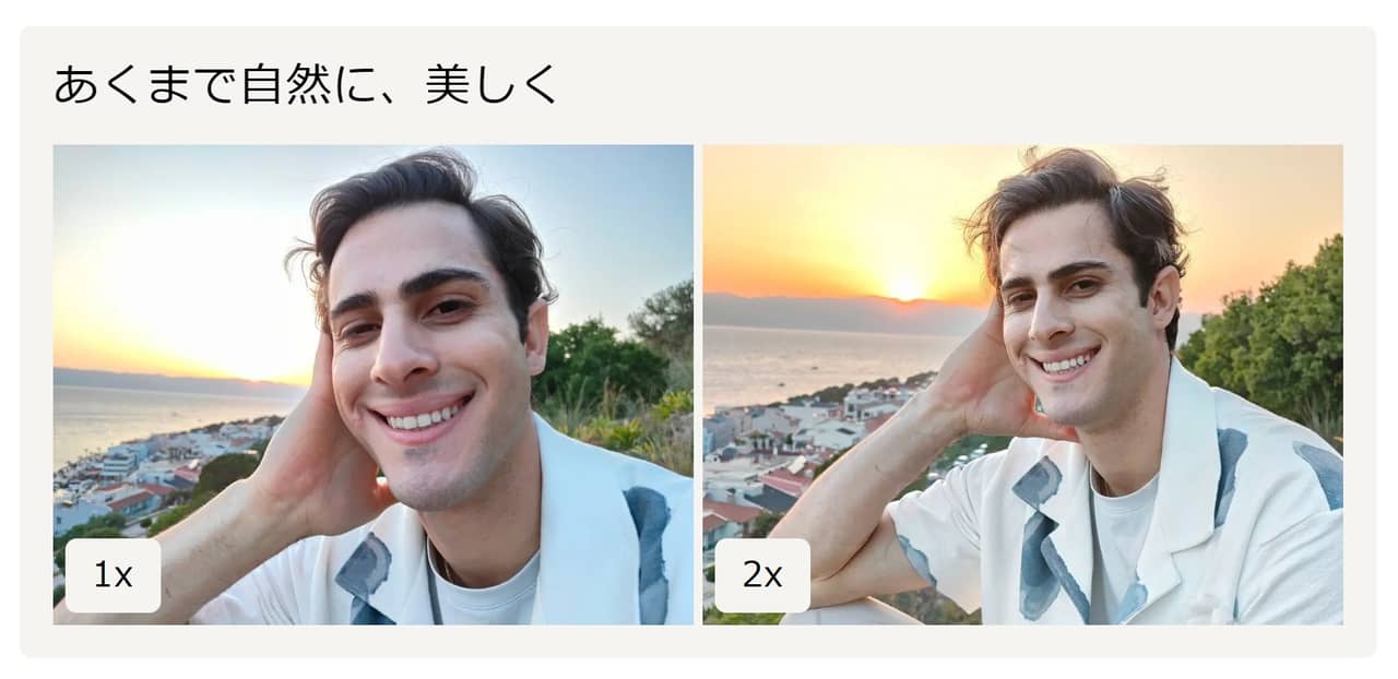 ▼OPPO Reno10 Pro 5G公式でもこういう感じで参考を出してました。人物の輪郭がかなり変わっていますね。↓