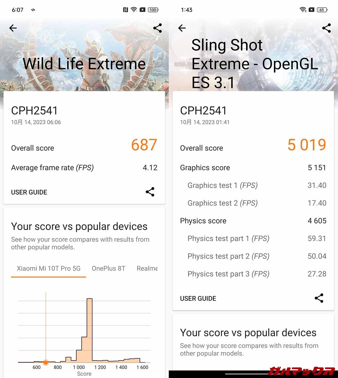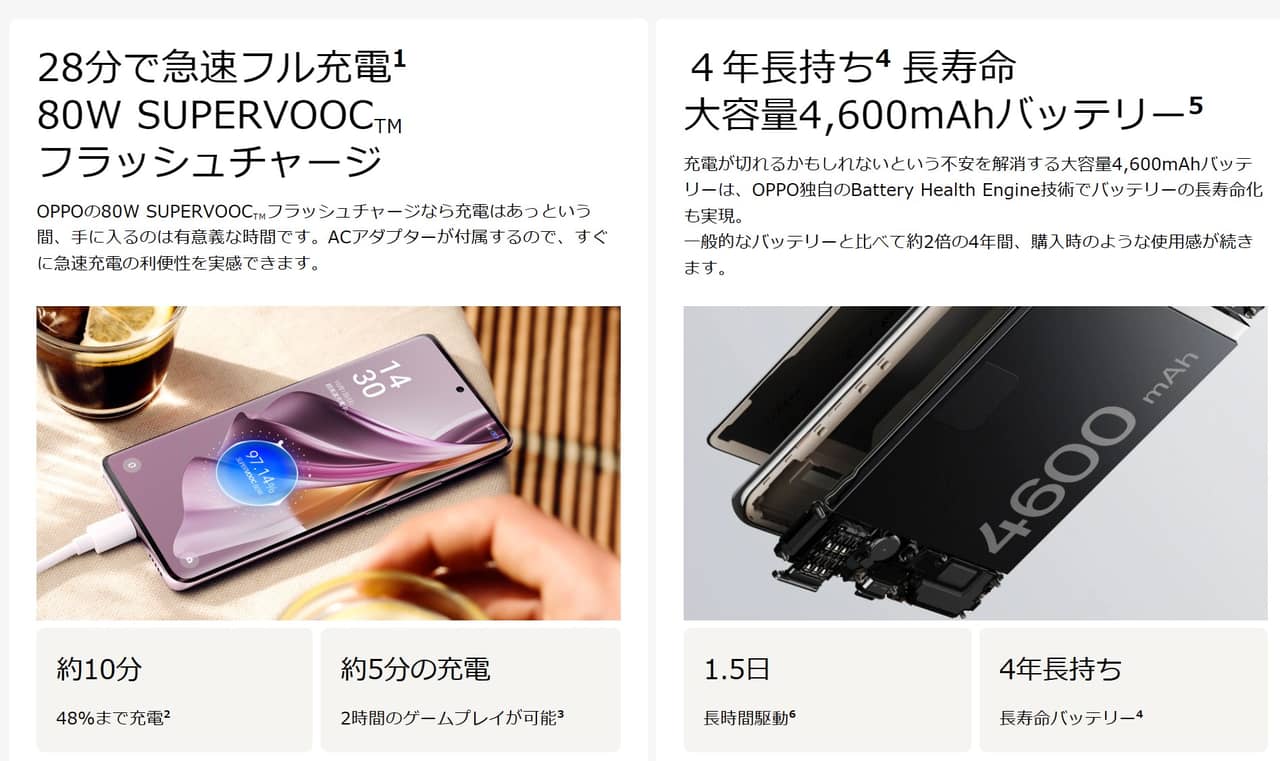 2週間ほどOPPO Reno10 Pro 5Gを使ってたんですが、SIM突っ込んでSNSとかメシんときのカメラで撮影とか普通に使ってた(3D系ゲームはしなかった)ぶんには電池は十分持ちました。