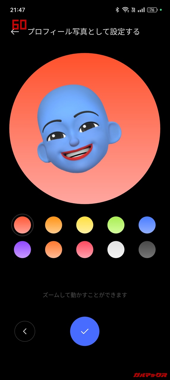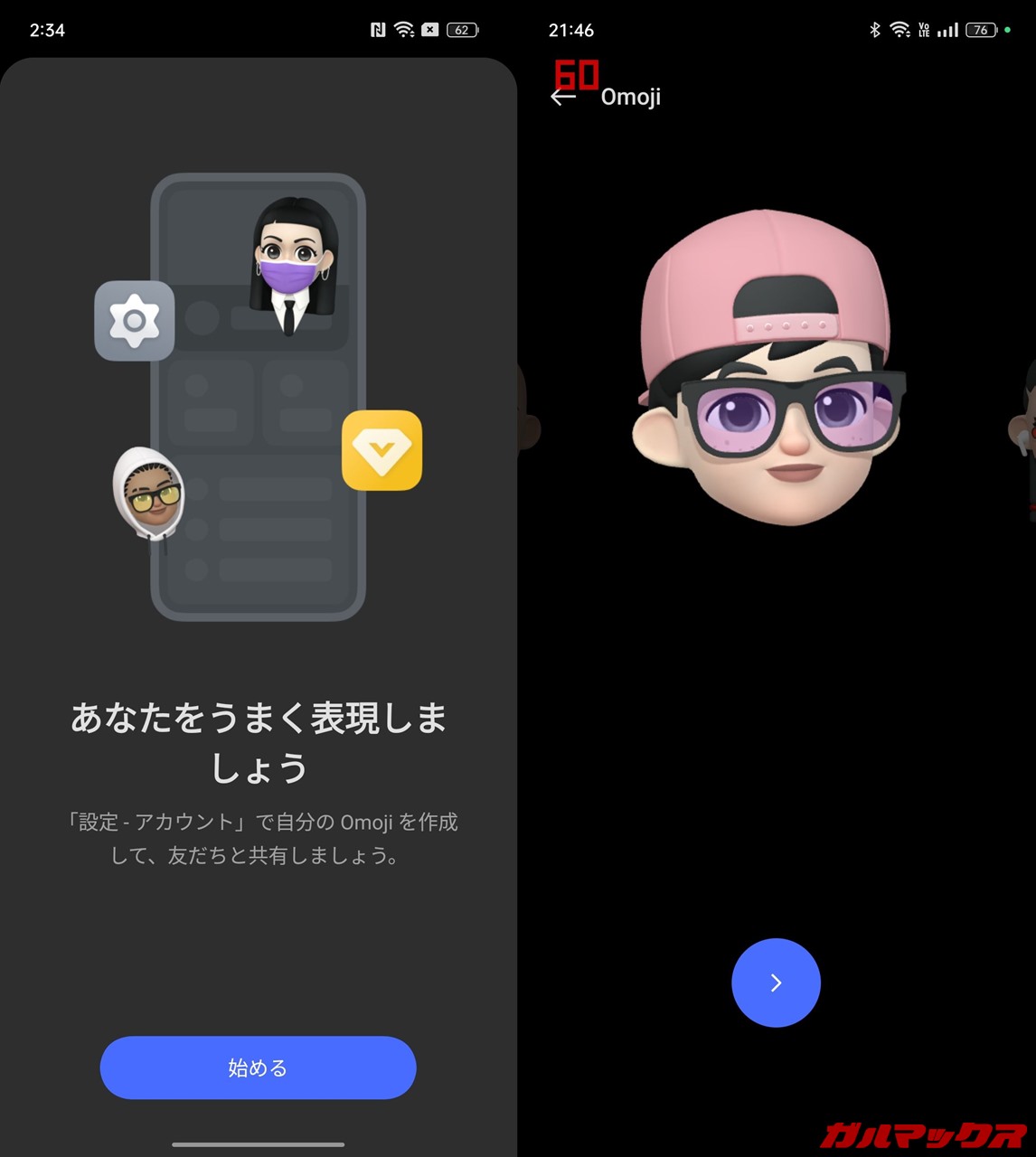 ▼あとミー文字ならぬOmojiっていう、なんかアバター的なもんも作れます。とりあえず作りましたが使い所は見当たりません。OPPOのアカウントのプロフ画像にしたぐらいかな。↓