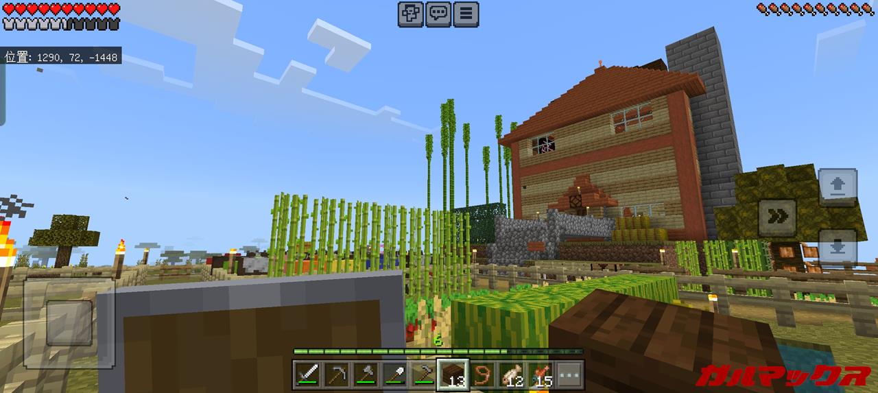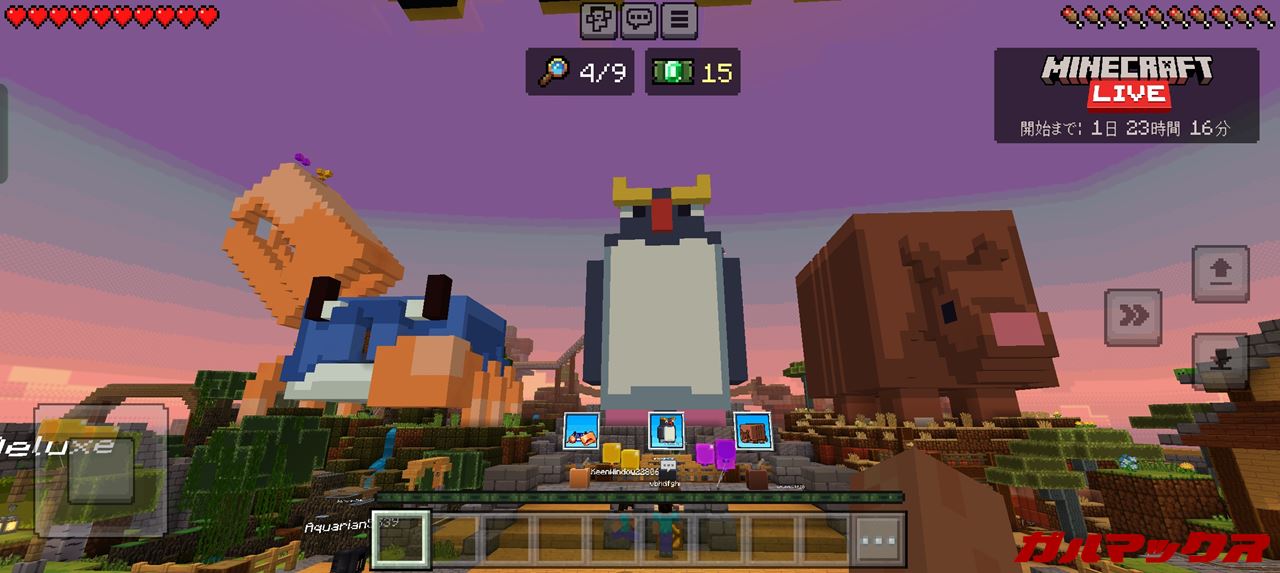 ▼マイクラだとデフォルトで12チャンク表示。こちらは動作も軽めで操作も申し分なくでき、遊びこむには十分に思えます。ちなみに1枚目はイベント投票のワールド。カニに入れましたが負けました。アルマジロくんおめでとう。↓