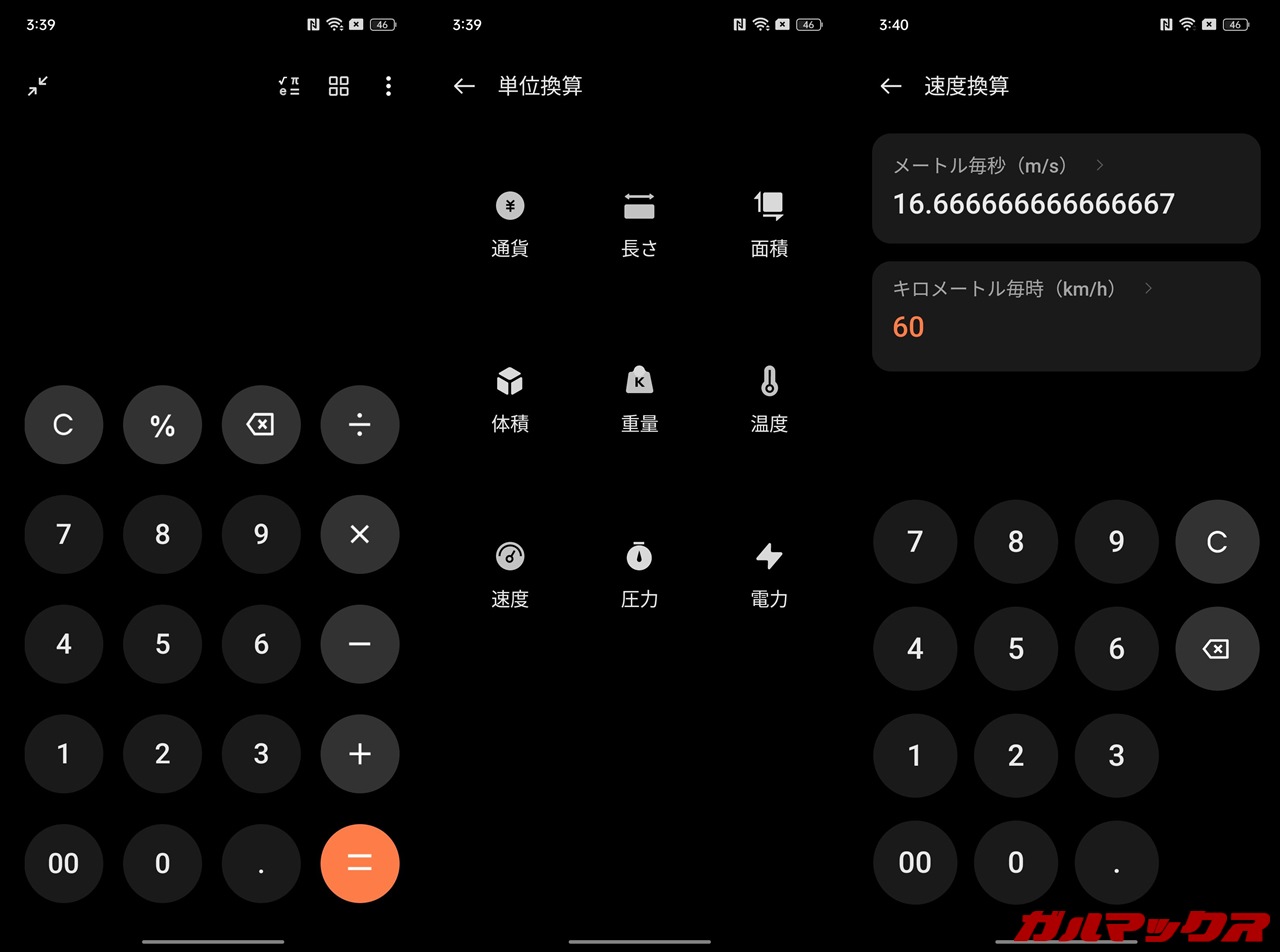 ▼個人的に神なのが電卓。電卓です。UIデザインじゃなく機能性が神。電圧とか速度とかの換算も対応。筆者はこれらの計算はしないんですが。↓