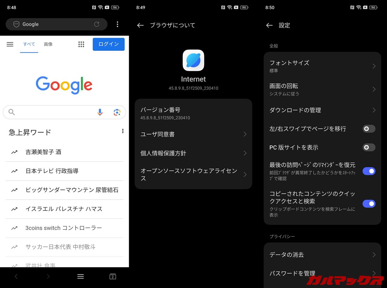 ▼このデフォブラウザはGoogleアカウントとの同期もできない。そもそもChromeがあるし。とはいえ広告ブロッカーはデフォで使えるのでその点は有利ですね。つーか「ビッグサンダーマウンテン 尿路結石」ってなんだ‥?↓