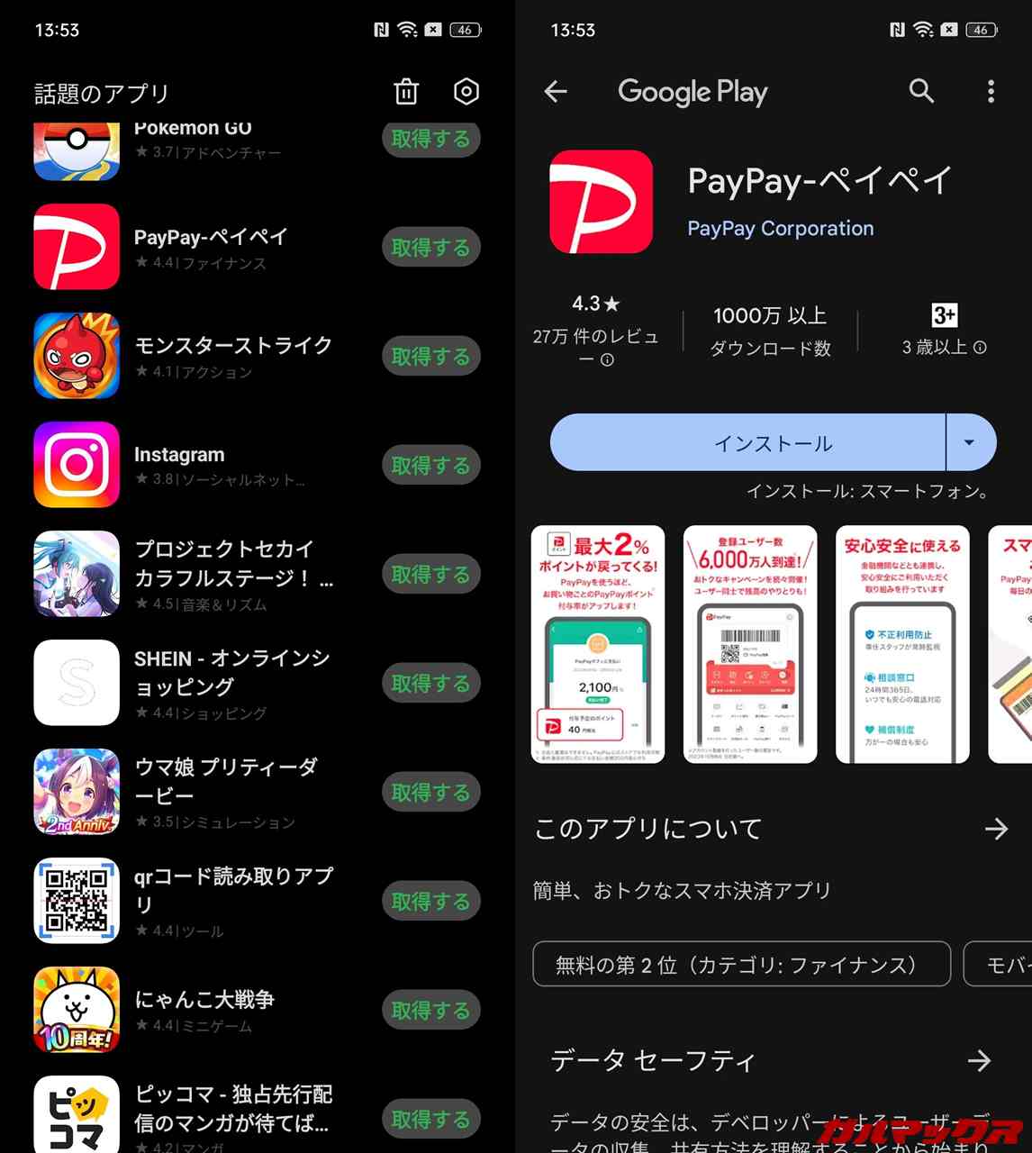 ▼後者はアプリストアに見えるけど実際はPlay ストアに飛ばすっていう挙動。またアプリによっては日本で利用できないって表示も出るし実用性は感じられんですね。これは憶測ですが、元々海外向けのアプリを調整したのかな。↓