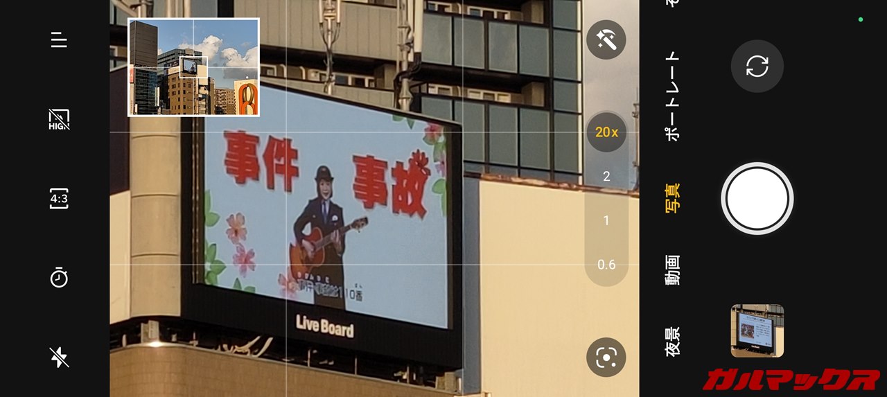 ▼また高倍率ズーム時は左上にプレビュー画面も出てきます。手ぶれ補正も対応しており、若干動いても被写体が動きにくかったのも良かった。↓