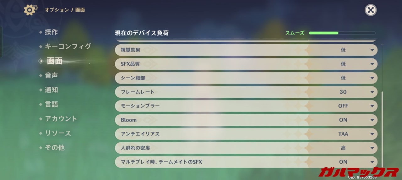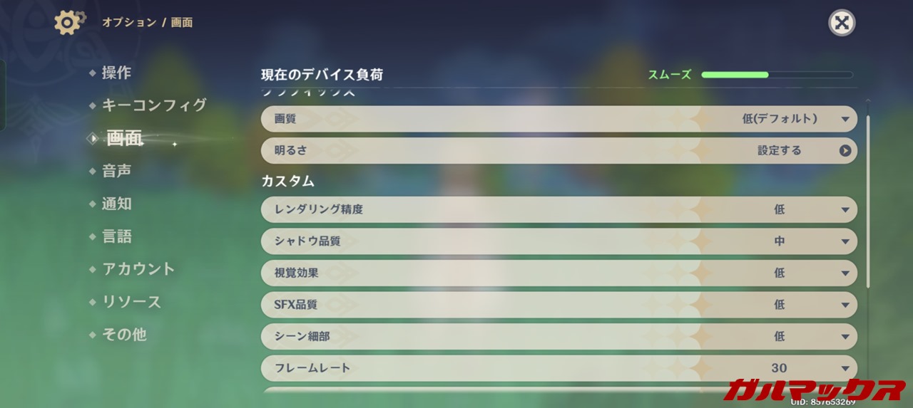 ▼ゲーム(特に3D系)ですが、画質次第といったところです。原神で検証したところデフォルト画質は「低」。↓