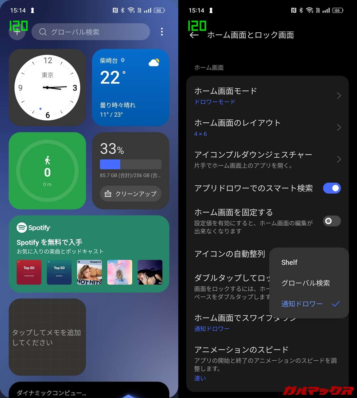 また、OPPOの元サブブランドであったOnePlusスマホも最近はColorOSを搭載しているのですが、その影響ゆえかOnePlusのOxygen OSと機能面で統合しているようですね。Oxygen OSの機能が随所に見られます。