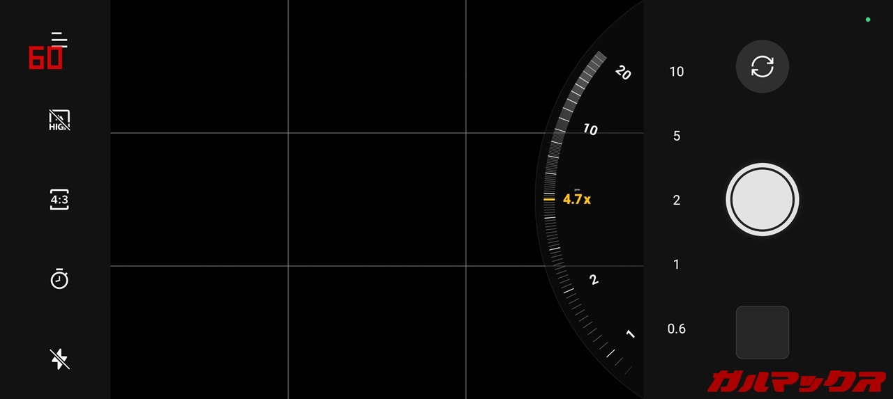 ▼あとワンタップでズームできる倍率の選択肢も多かった。ズーム操作はダイヤルを回してズームするタイプでした。このダイヤルでのズーム操作、ピンチ操作よりもやりやすくていいですな。1本指だけで済むし。↓