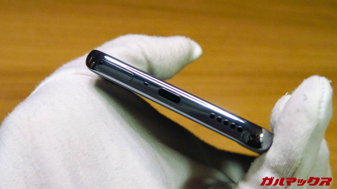 ▼特に充電端子周りは気になる。というのもType-C端子周りって何らかの加工が施され、異なる材質や模様で覆われている事が多いのですが、OPPO Reno10 Pro 5Gは未加工でそのまま穴が空いたような見た目。↓