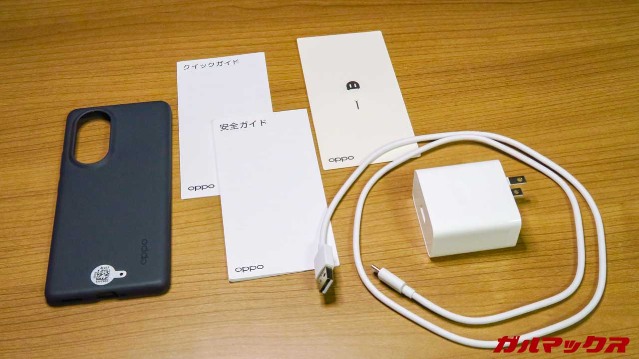 ▼付属品は専用ケース、充電器、充電ケーブル、クイックガイドそしてSIMピン!充電プラグがオミットされている機種も増えていますが、OPPO Reno10 Pro 5Gはしっかり同梱。後述の80W充電も可能です。↓
