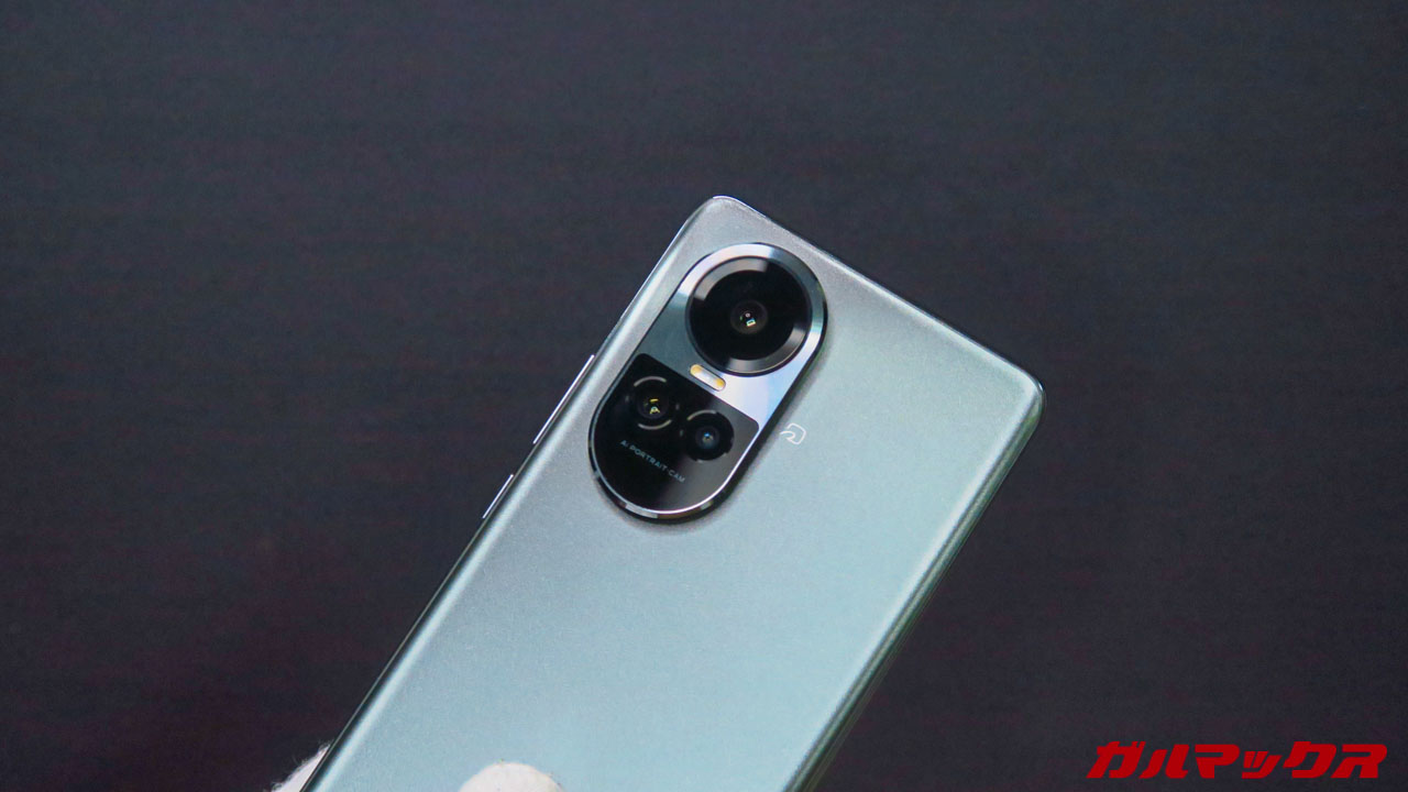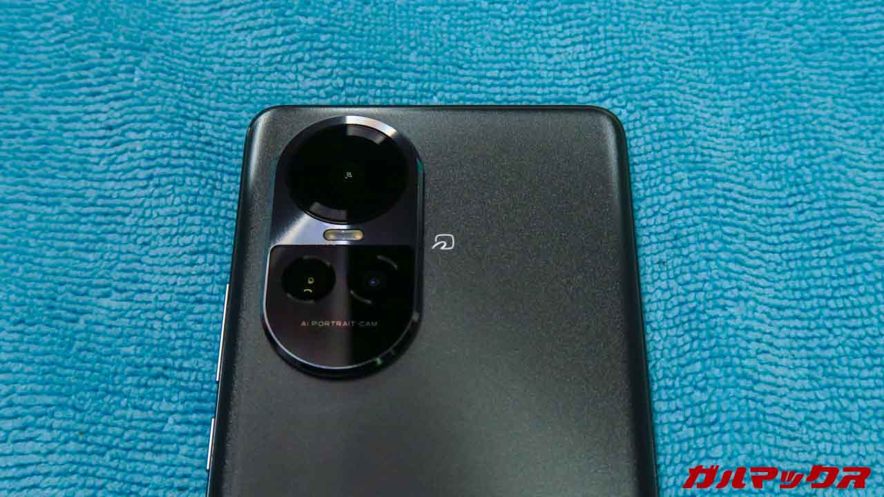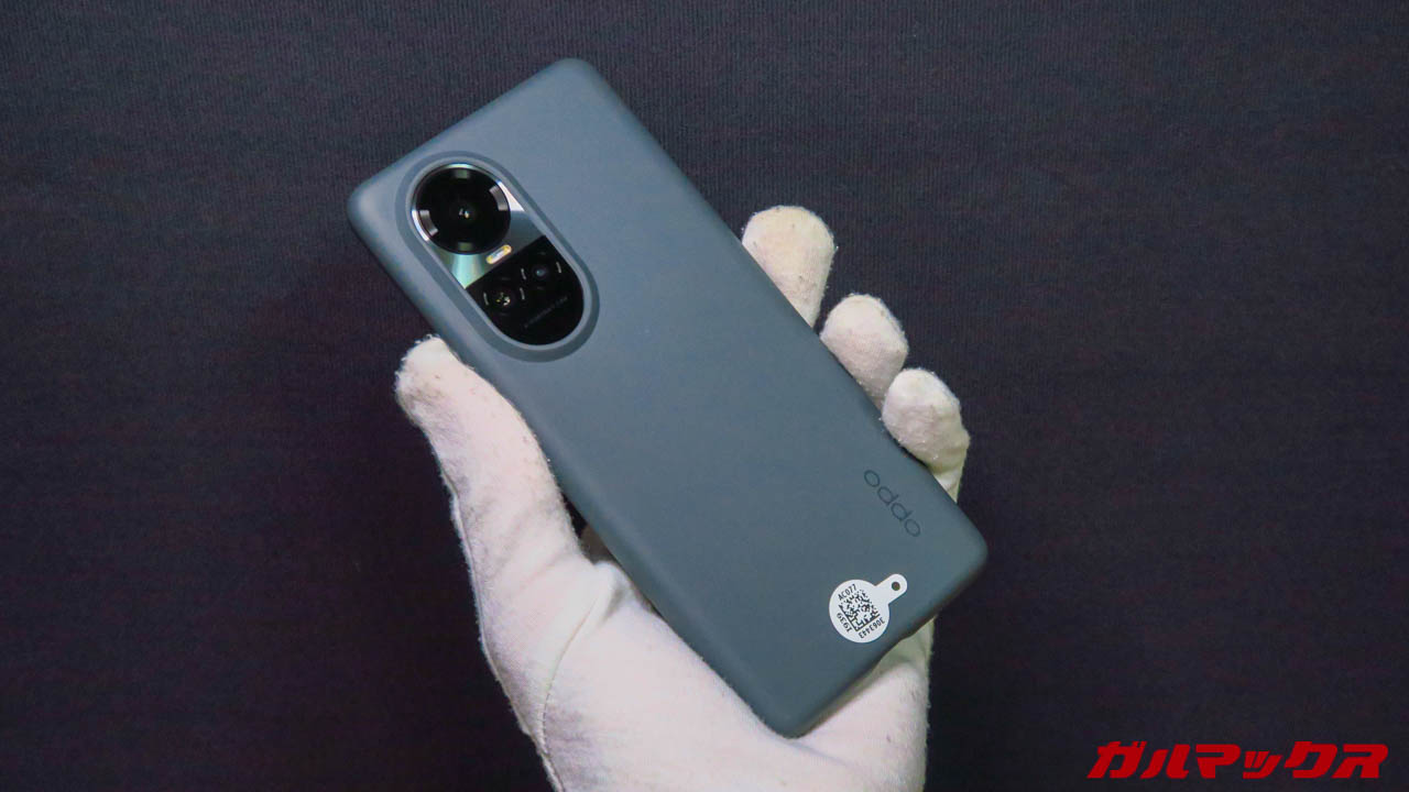 ▼カメラの見た目が独特なのもOPPOらしいっすよね。なんかピクトグラムの人のシンボルみたいな形です。とにかく主張が激しく、これにより遠目から見てもOPPO Reno10 Pro 5Gと区別がつけられそう。↓
