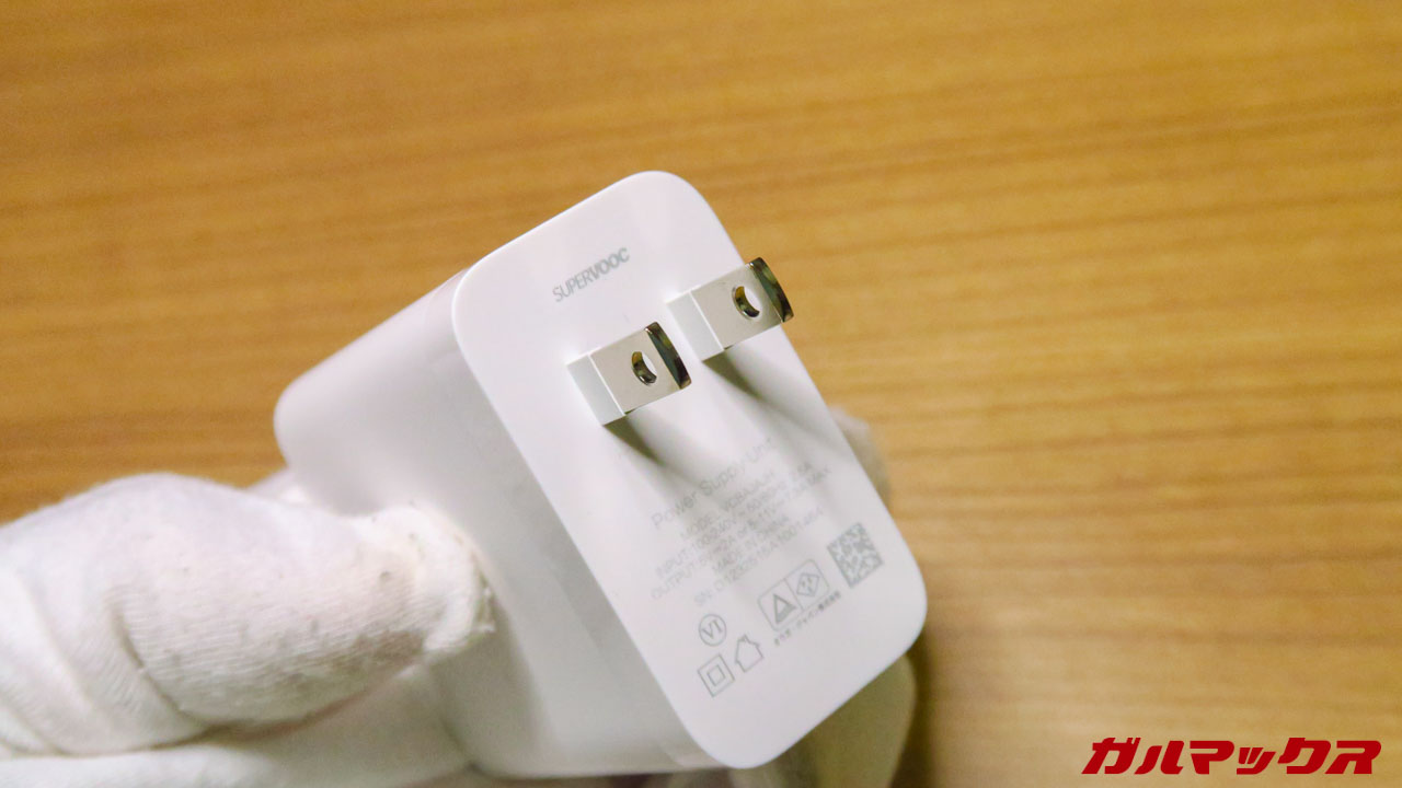 ▼あとは充電プラグ、高出力タイプゆえかかなりでかいです。プラグもたたんで収納できないため携行性は悪く持ち運びには適さず、また間隔の狭いコンセントとかだと隣と干渉する可能性もあるので注意。↓