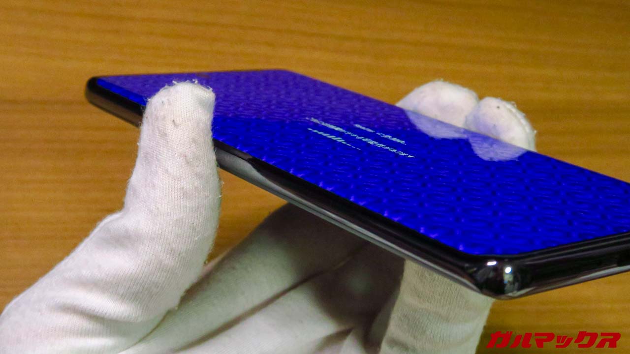 ▼カラーはグレー。材質はパープルとは異なりガラスではないそうですが、それでもガラスにひけを取らないぐらいさわり心地も見た目も良すぎます。OPPO Glowっていう特殊加工によるもので、独自名称を打ち出すだけある艶っぽさです。↓