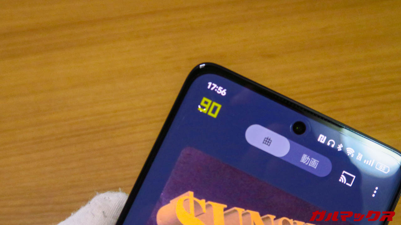 妙にスクロールに残像感あるなって思ったらおそらくこの現象でしょう。おそらく電池持ちのために自動で下げていると思われますが、個人的には120Hz固定でできる設定も欲しかったですね。細かい部分とはいえ普通に気になる。
