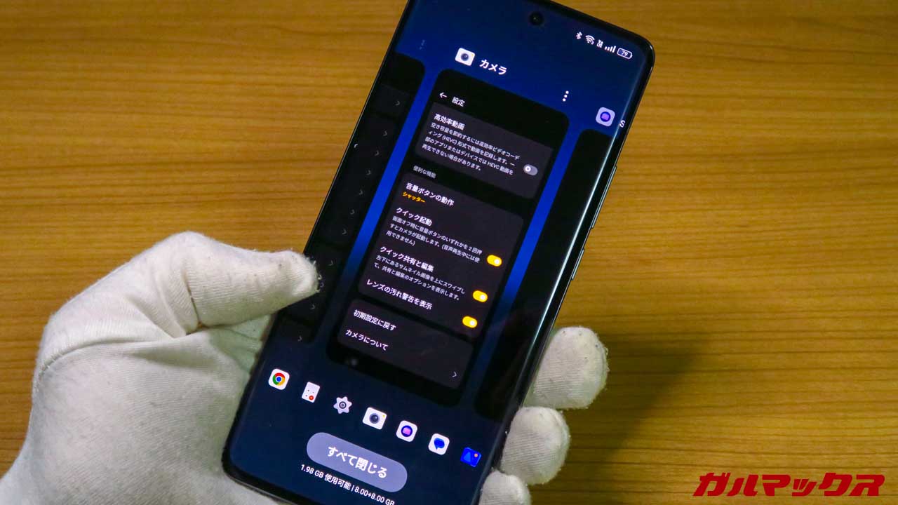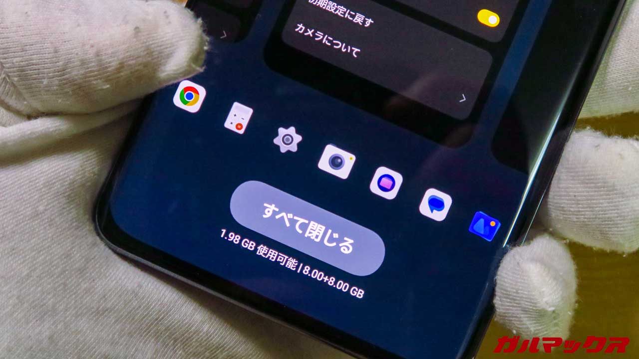 普段使いはマジでヌルサク。物理メモリ(RAM)は8GBに加えて、追加で8GBまでのRAMブースト(保存容量を消費して仮想メモリを増設する機能)にも対応しており、安定感もあるって印象でした。