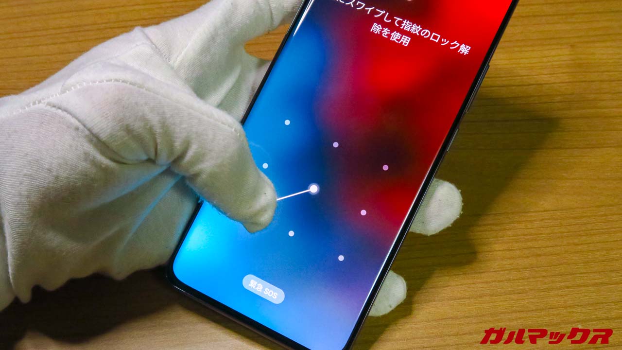 OPPO Reno10 Pro 5Gは顔認証、指紋認証どちらも対応。指紋センサーは画面内指紋認証タイプとなってます。