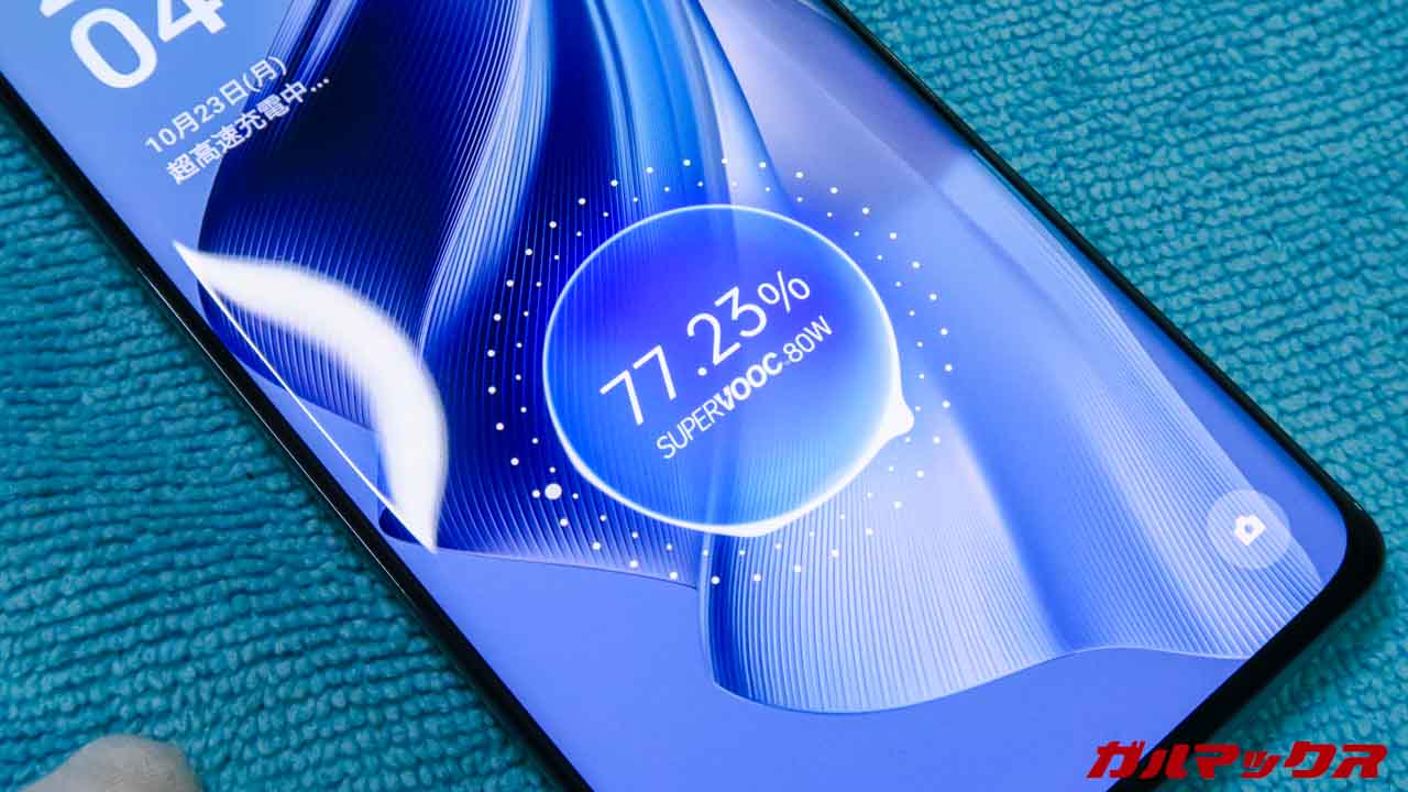 ただこの80W充電は公式の充電器でしか行えない可能性はあり、他社製の充電器だと80W充電判定されてませんでした。もしサードパーティー製充電器を使う場合はこの点に注意。公式の充電器を使うのが確実です。
