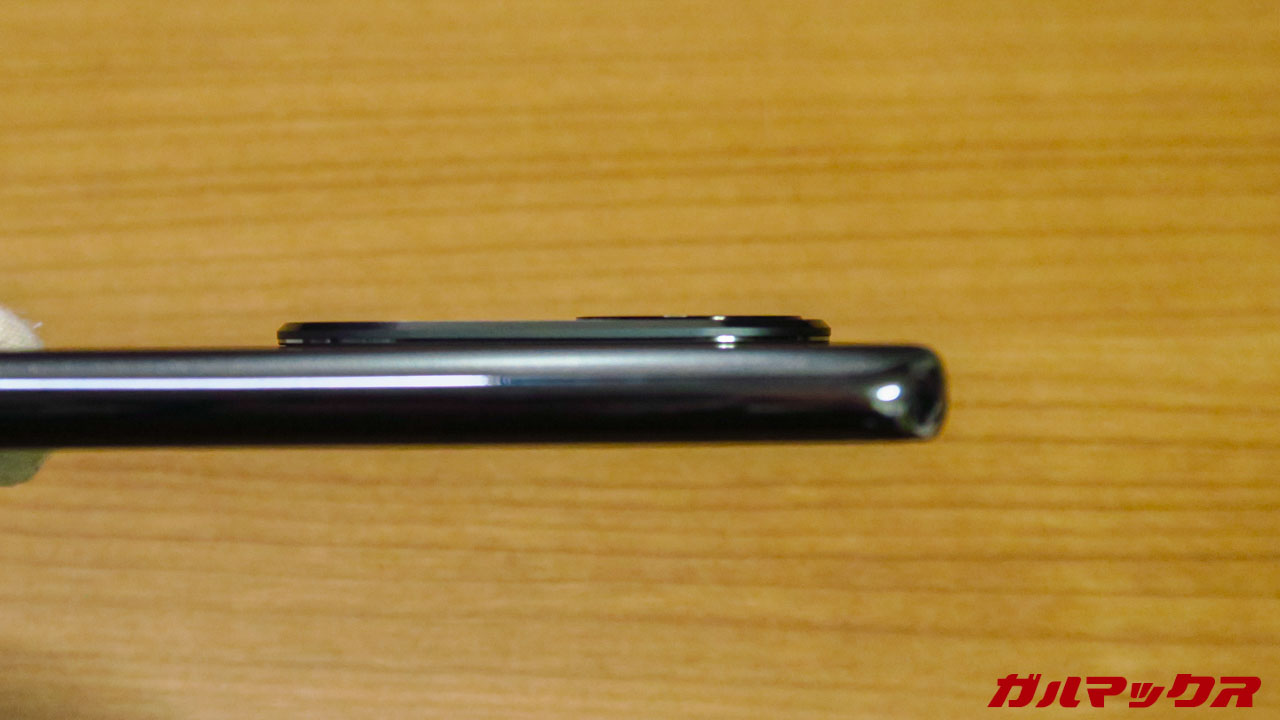 ▼ただ‥このカメラの出っ張り、えげつない。イマドキのスマホはみんな出っ張ってるんだけど、その中でもこのモデルのカメラは目視1mm以上の厚みはあります。後述する純正ケースでも、このでっぱりを解消できませんでした。↓
