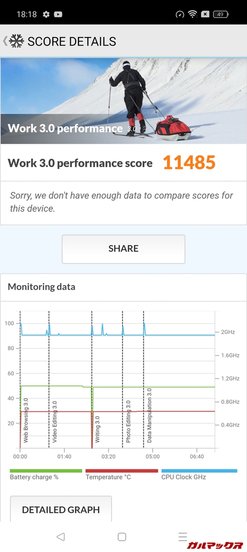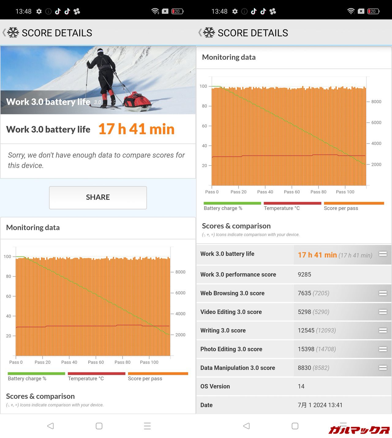 いつものバッテリーテストでは、めちゃくちゃ良好な結果を叩き出していました。バッテリー持ちランキングで他のモデルと比較できるのでチェックしてみて下さい。