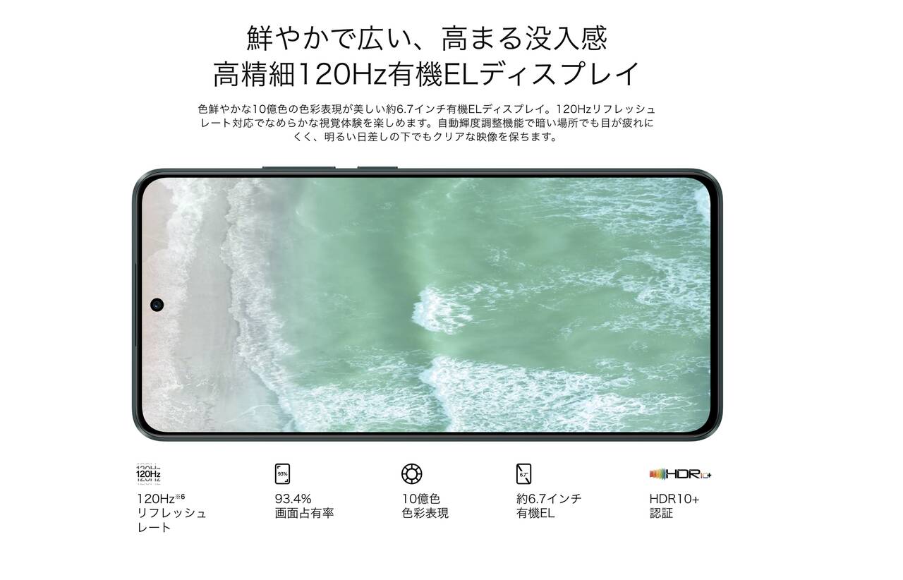 - FHD+の120Hz有機ELディスプレイ