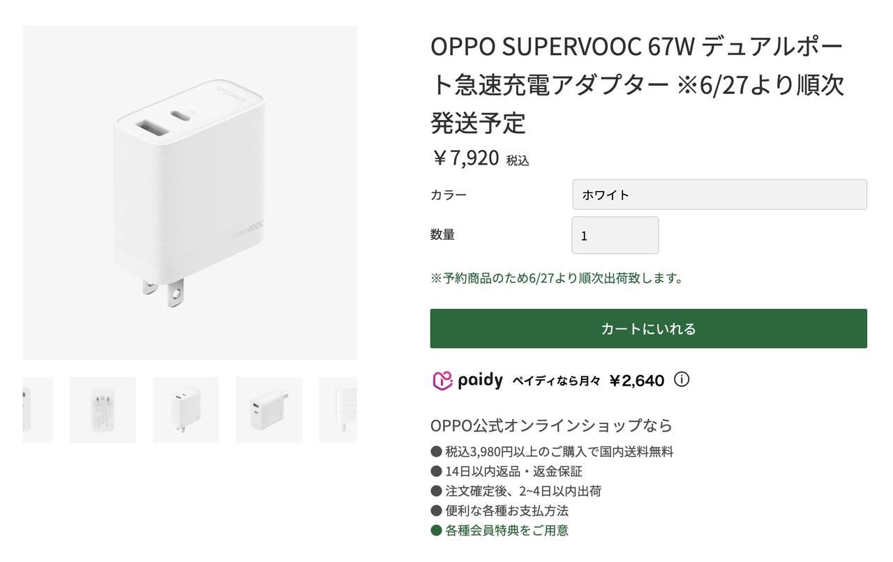 9 Aが18W充電だったのでめちゃくちゃパワーアップしてますよね〜。67W充電だと100%までわずか48分で満充電OK。ただし・・・67W充電器は別売りなんすよね(´・ω・`)