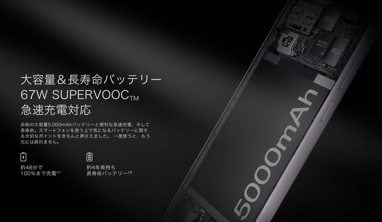 - 67W充電対応の5,000mAhバッテリー
