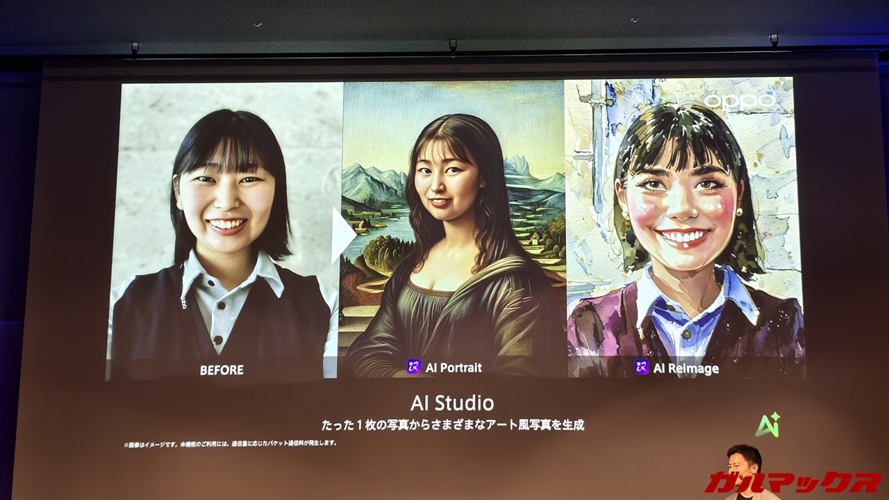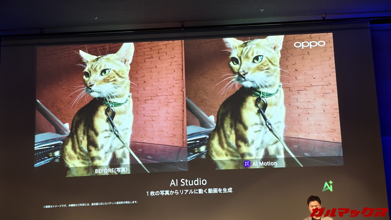 メインが高画素でデジタルズームでも2倍までならキレイに撮れそうなのはもちろん、本機はOPPO AIによる機能性もアピールしていました。