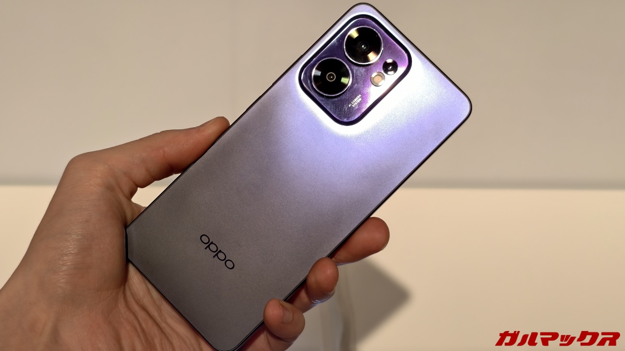 ▼特にネイビー(というか実質パープル)は反射で結構鮮やかに光ります。ミドルスマホとはいえこういう部分で色による個性を出してくるあたりがOPPOらしい。↓