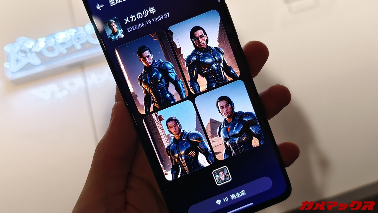▼そうそう、人物を撮影したときに、テーマに沿ったAI画像生成も本機で対応していますよ!なぜか前のFind X8のレビューと同じような感じになっちゃった。↓