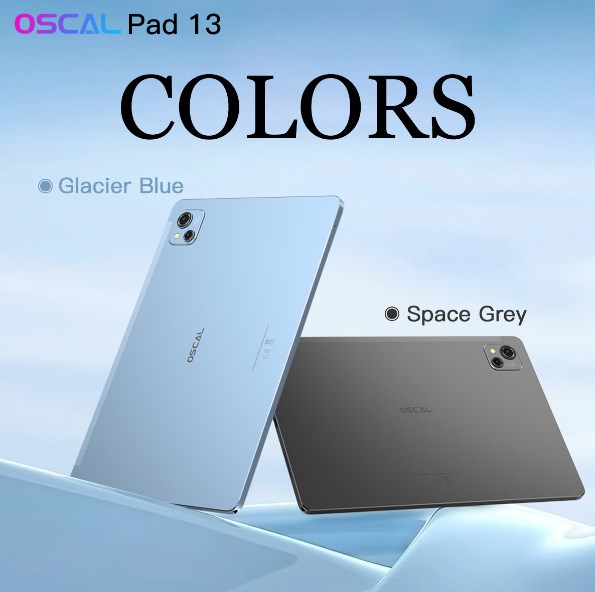 ▼OSCAL Pad 13のデザインはiPhoneライクなカメラデザインが特徴的なデザインで側面はフラットな形状になっています!カラーはブルーとグレーの2色!↓