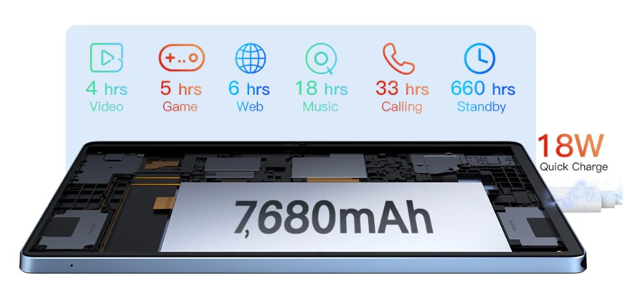 - 7,680mAhバッテリー搭載、18W急速充電に対応