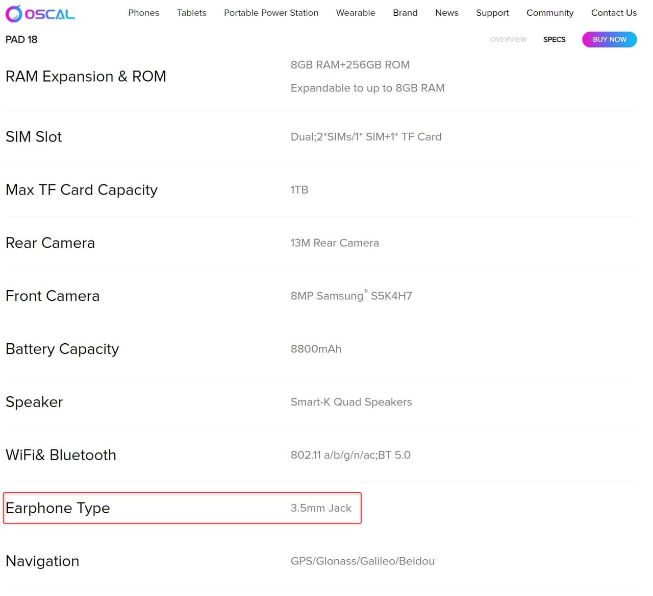 恐らくメーカーの誤記。OSCAL Pad 18はイヤホンジャック非搭載なのでご注意を。