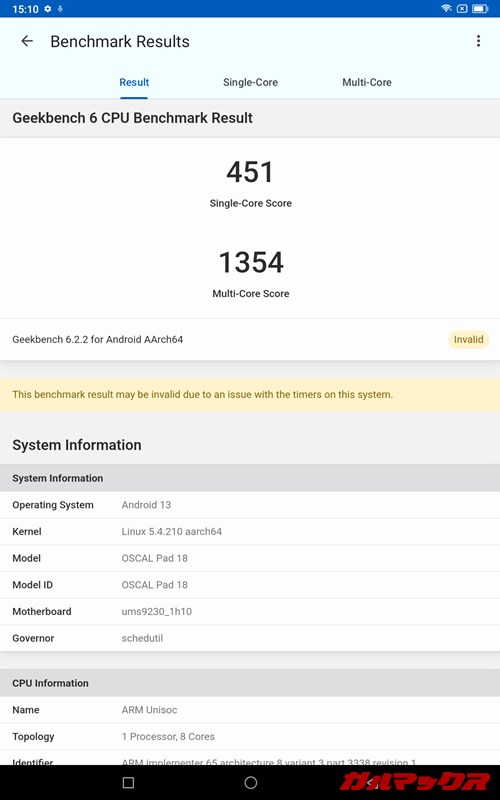 Unisoc T616はGPU性能がとても低いので、古めのタイトルでも満足に動かないことが多いかも。ただ、これはOSCAL Pad 18だからという訳ではなく、そもそもSoC自体のゲーム性能が低いからです。Unisoc T616の性能を出しきれてないとう訳ではなし。