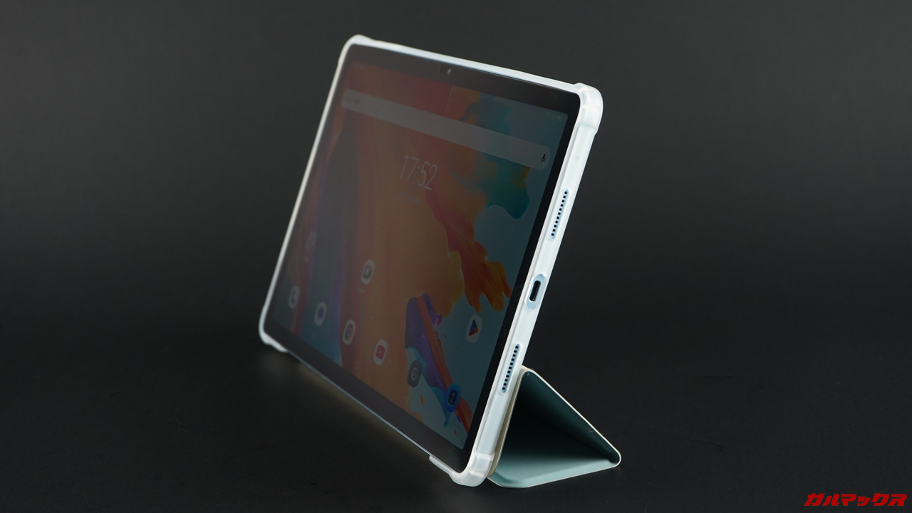 ▼保護ケースはスタンドにもなるタイプ!ただ、使い始めはカバー側が反発してスタンドスタイルを維持しにくい!多分使っていけば馴染むはず。↓